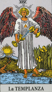 de un gran ángel que sostiene dos cántaros de los que fluye continuamente